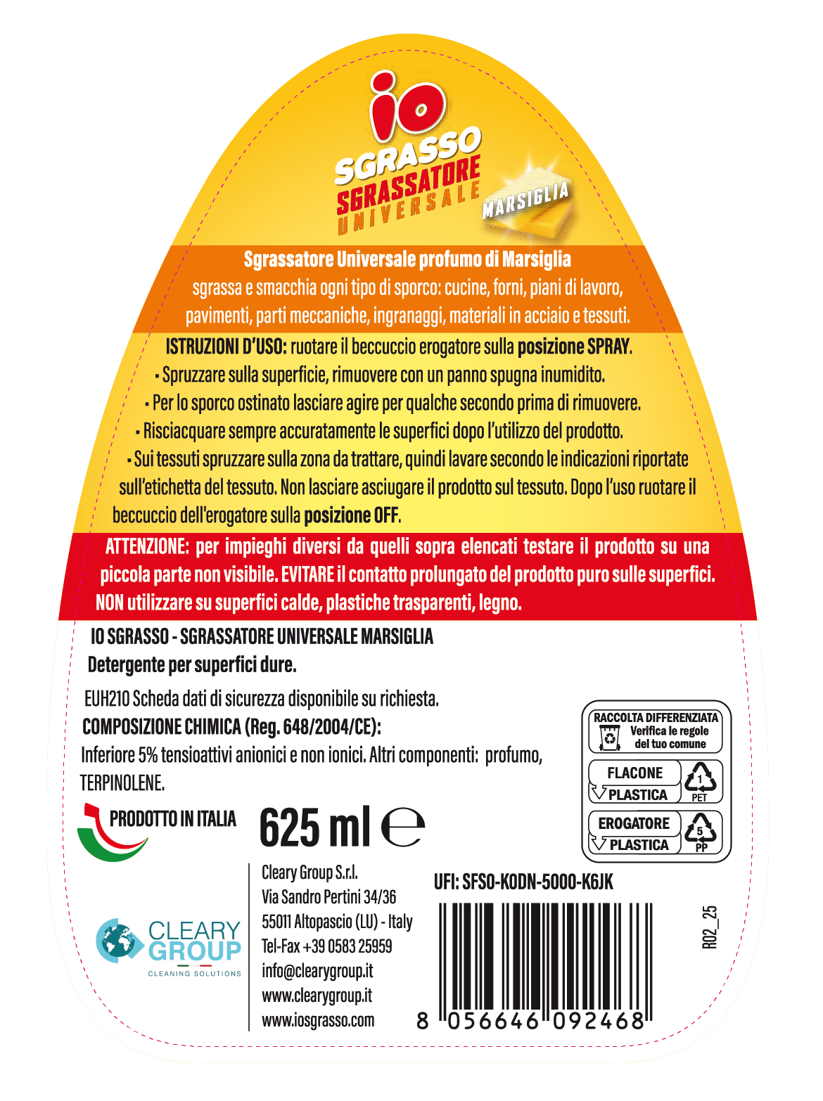 Sgrassa e smacchia ogni tipo di sporco. Perfettoin cucina e ideale anche in altri contesti di utilizzo.Dermatologicamente testato: non irrita le maniContiene tensioattivi di origine vegetale.